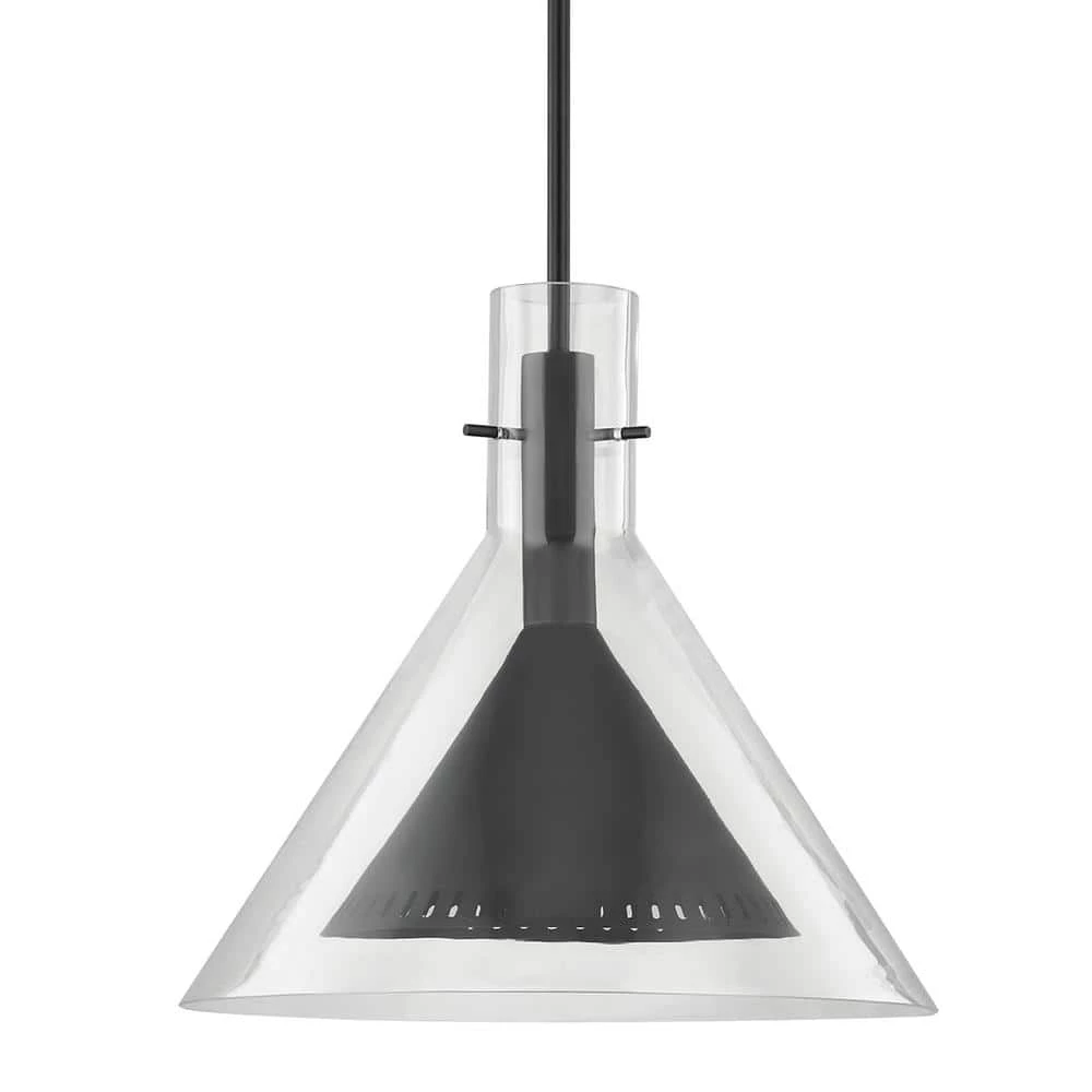 1-Light Satin Black Pendant with Glass Clear Shade by Troy Lighting