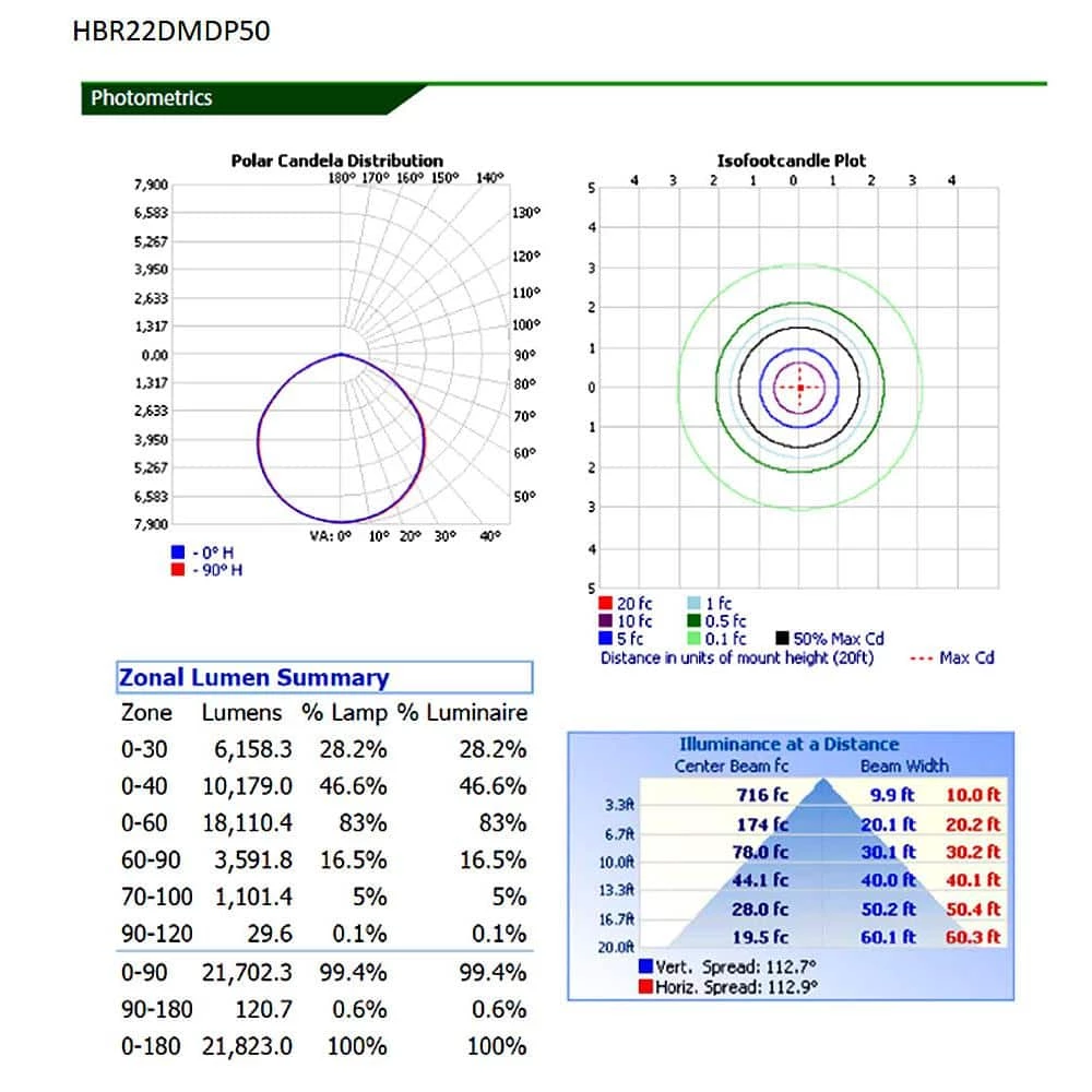 - Uses 120-Watts and produces 22,500 Lumens of daylight (CCT 5000K) at 70 CRI