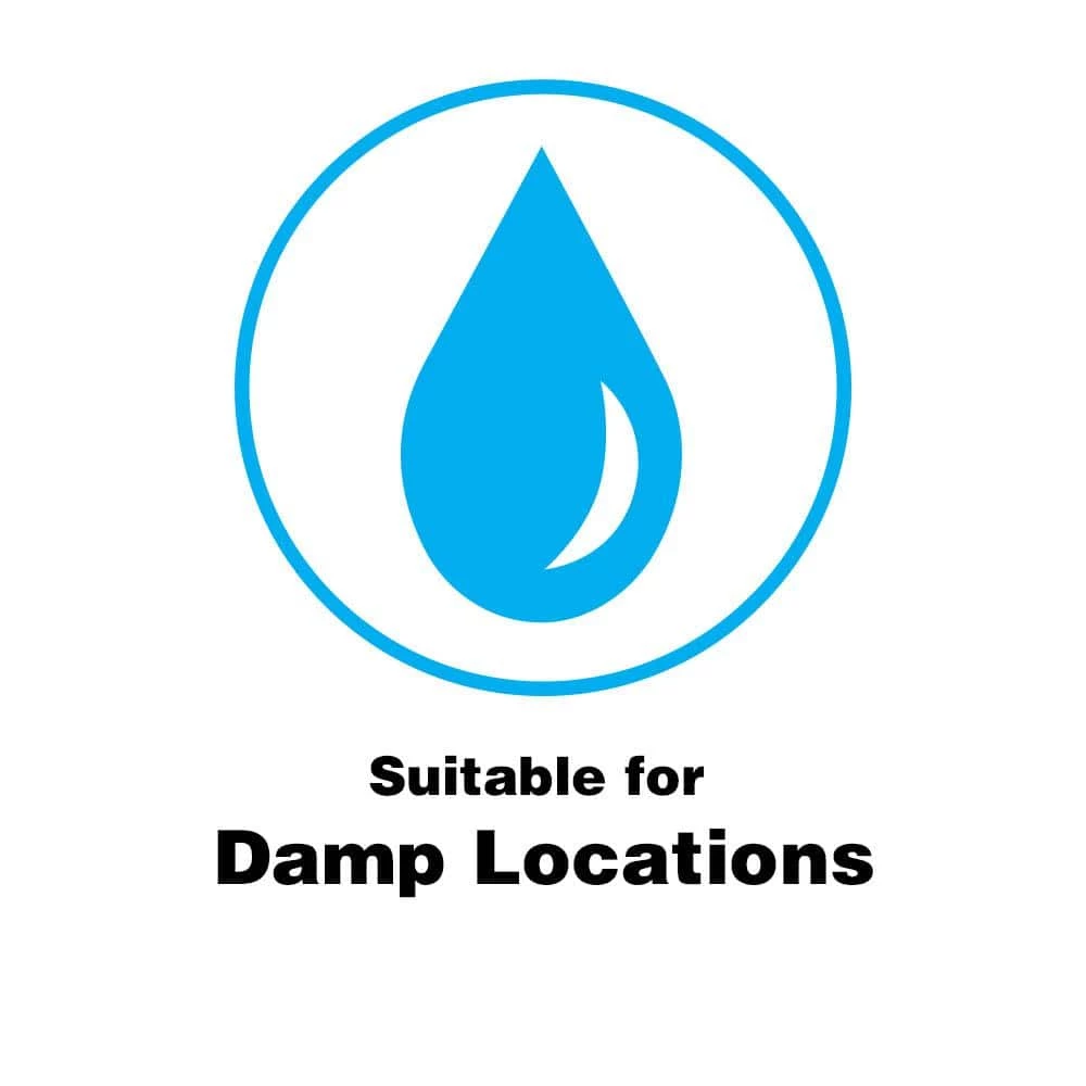 - UL Listed to safety standards, damp location listed, for use under covered ceilings, for use in ambient temperatures from 0°F (-17°C) to 100°F (38°C), IP65 rated