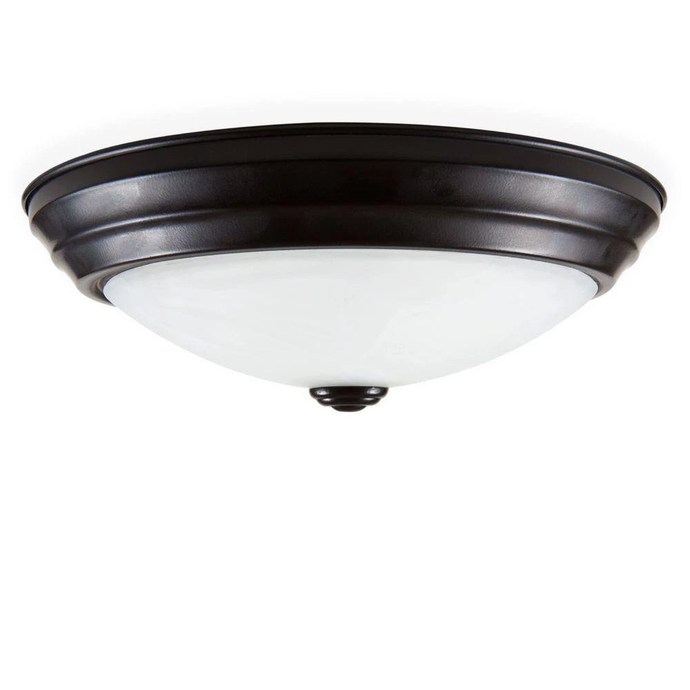 EnviroLite low-profile ceiling light fixtures are designed to enhance any decor and with a clean, fresh appearance. This modern LED light fixture easily mounts flush with the ceiling and the low-profile design allows doors to easily open and close. The fixture’s protective satin bronze finish will look great for-years to come, and the Alabaster glass lens diffuses the LED light evenly – you won’t see any dark spots or shadows. This light fixture produces 1,170 Lumens (about the equivalent of a 75-Watt light bulb) and uses only 17-Watt. The flush mount uses an environmentally friendly LED lighting engine that produces higher quality light for a fraction of the electricity, saving you money off your utility bill. The LEDs are made to last for 50,000-hours or 45-years at 3-hours per day. And what’s better – there are no bulbs to replace. This light fixture is dimmable, and the center-lock design makes installing this flush mount a breeze (see instructions or packaging for details). This ceiling fixture is ENERGY STAR listed, ETL-rated for damp locations, and features a 5-years warranty for peace of mind.