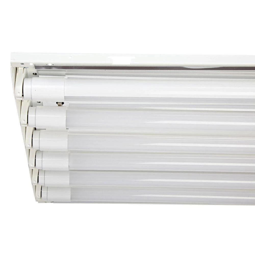 EnviroLite T8 LED tube high bay lights are the perfect solution for commercial lighting needs. These light fixtures are designed to save energy and lower maintenance costs. The LED tubes included use 30% less power to produce the same amount of light as fluorescent fixtures. The LED lamps are a low maintenance solution that eliminates the need to replace wired ballasts and drivers because the power source is in the tube. Because it’s LED, you will never hear the hum that fluorescent fixtures make. The tube lamps in this High Bay provide bright white 4,000K CCT light at 21,000 source Lumens (3,500 Lumens per LED lamp). EnviroLite commercial lighting LED tubes are built with LED chips that last for 50,000 hours of continuous use. The tubes and fixture are backed by a 5 year warranty. Fixtures are ETL Listed and IC rated for contact with insulation and can be installed in damp locations. The T8 LED tube lamps are DLC Listed to qualify for commercial lighting rebates and special incentives in certain areas.