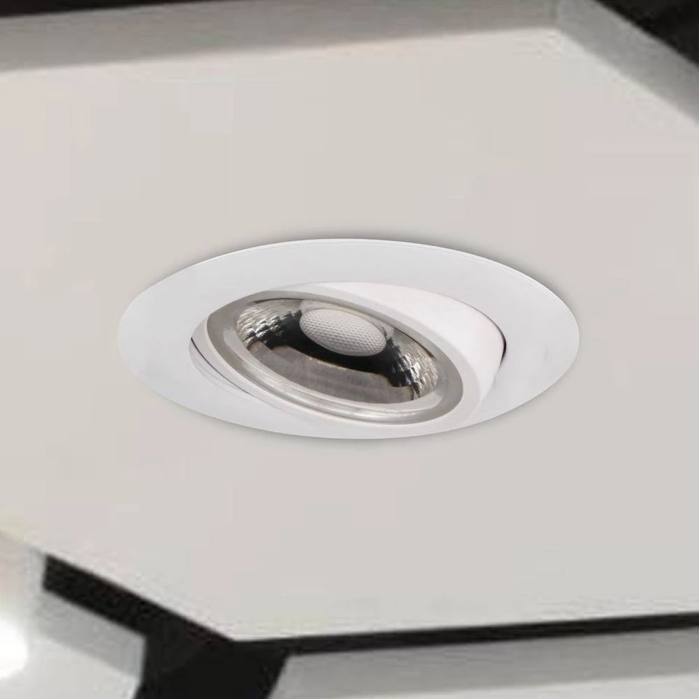 EnviroLite 4 in. LED Canless Gimbal Downlight features the latest high performance LED technology, designed with best visual aesthetic for today’s modern home and to be easy for installation. It is Dimmable and features a 90 CRI rating, with an R9 value exceeding 50, making it 1 of the highest quality light fixtures on the market. Installation does NOT require a recessed housing or junction box, simply cut a 4.125 in. Dia hole in desired location on the ceiling using the provided template. This 4 in. canless downlight comes with spring-loaded retention tabs for a secure Fit. This fixture is designed specifically for small spaces where height clearance is limited such as beams or ductwork, making it perfect for your bedroom, living room, kitchen, drop ceilings, outdoor soffits and all general lighting applications. Adding an adjustable, multi-directional light system to highlight artwork or architectural design features in your home just got easier. Pick your preferred light Color Temperatures of 3000K (soft white) or 4000K (cool white). This directional downlight is ENERGY STAR rated, Insulation Contact rated (IC-rated), Title 24 Compliant, Damp-Location rated and backed by EnviroLite’s 5-Year Limited Warranty.