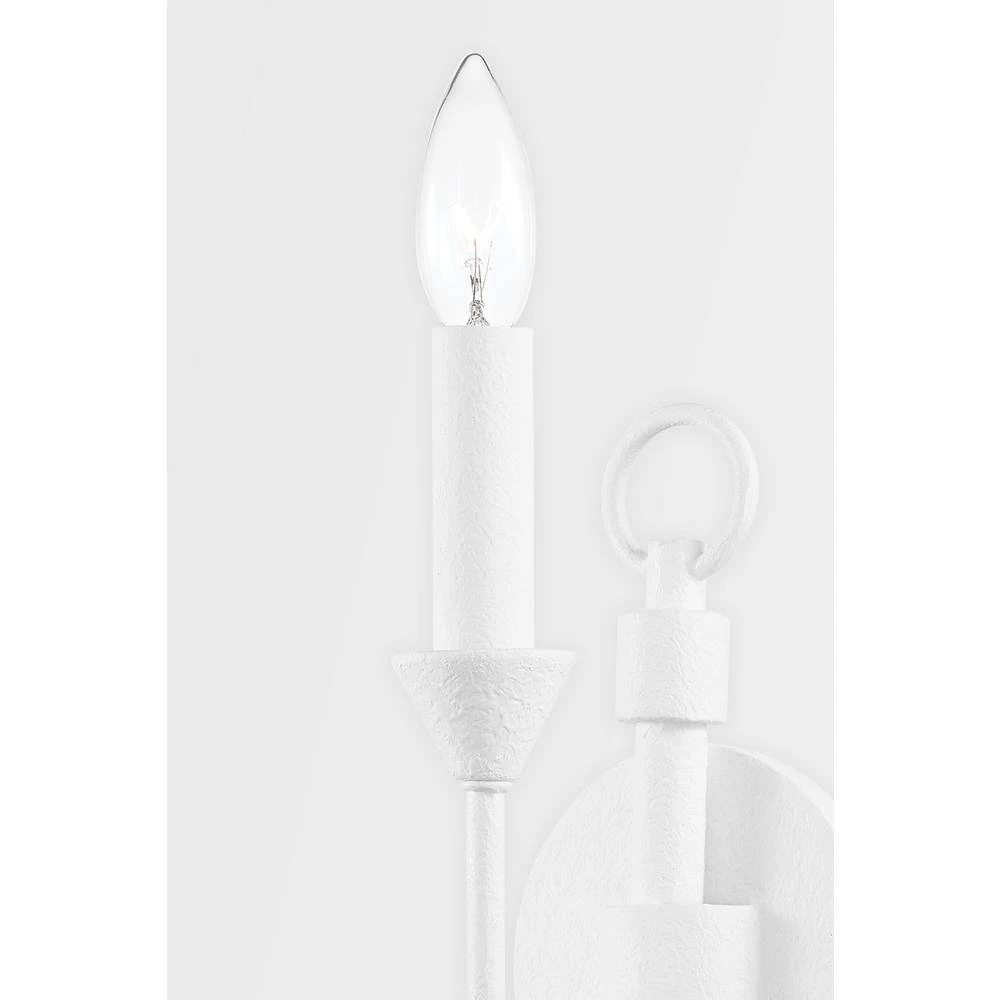 Cate’s large swooping arms give the piece a presence while still feeling open and airy at the same time. Whether as a simple single sconce or a breathtaking 18-light chandelier, each smooth arm holds a solitary bulb that emits a warm glow. Make a bold statement in Forged Iron or keep things beautifully clean in White Gesso.