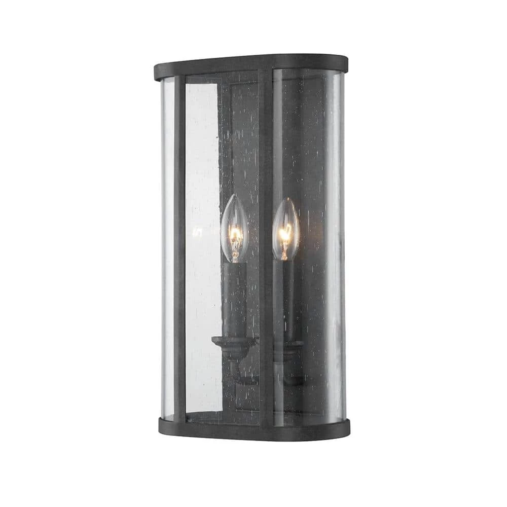 Chace is a highly usable, easily adaptable sconce. Seeded glass panels and a metal backplate come together to create an unexpected racetrack silhouette. Inside, candelabra bulbs give off a warm, welcoming glow.