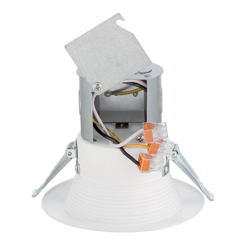 EnviroLite 4 in. Easy Up LED lights are the most innovative LED recessed ceiling products on the market for residential, new construction or remodel applications. They are an integrated LED recessed trim with a J-box attached that allows installation without a pre-installed recessed housing. Simply pull down the wiring through the hole in the ceiling and connect it directly to the fixture. The spring loaded clips clamp the fixture to the finished ceiling. These recessed ceiling lights use 80% less electricity to produce the same amount of light as an incandescent light bulb and you dont have to replace light bulbs. These LED lights are wet location rated, can be used in ceilings with or without insulation and they are compatible with most LED rated dimmers. Each ceiling light is airtight certified to prevent losses of air conditioning and heat, saving you even more. These lights are ENERGY STAR listed and backed by a 5-year warranty.
