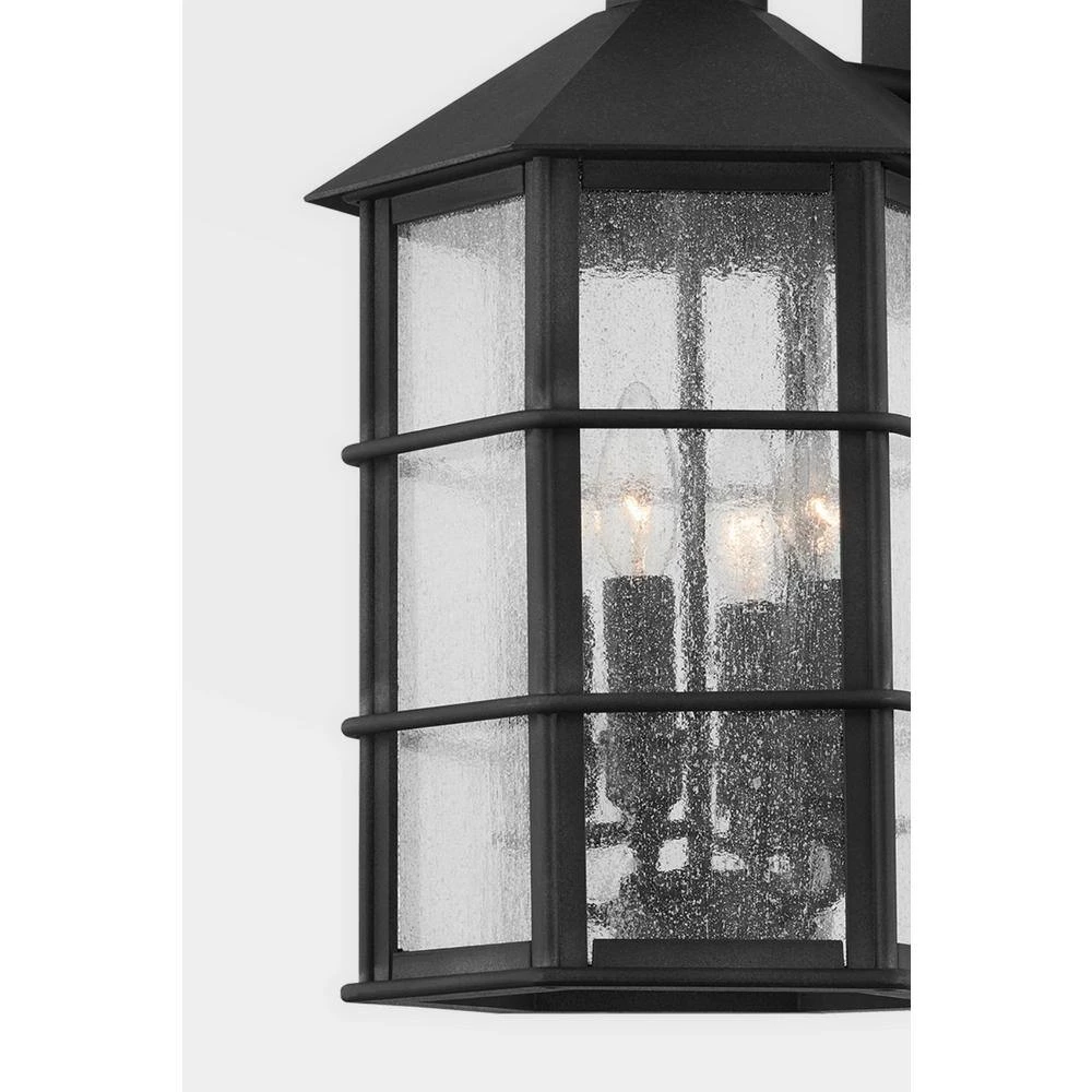 A modern take on nautical design, Lake County is versatile enough to work in a rustic retreat or contemporary city dwelling. A matte black frame is accented with seeded glass panes, creating a soft glow of diffused light. Available in French Iron as a wall sconce, pendant, flush mount and post lamp.