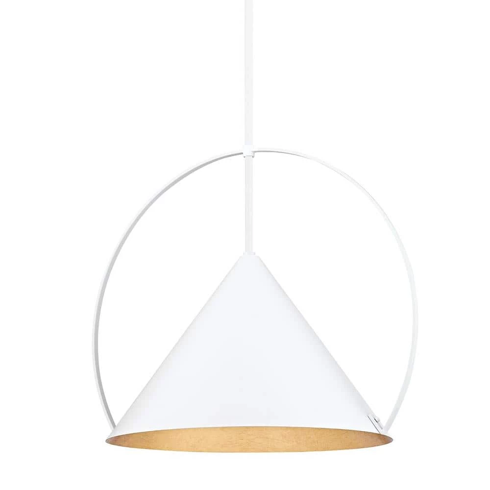 Mari takes the familiar cone-shaped pendant and turns it into a statement piece. A circular arm spans the cone from end to end adding an airy feel and giving the illusion it’s holding the shade aloft. The gold leaf interior gives the fixture a luxurious look when unlit and a positively stunning glow when lit.