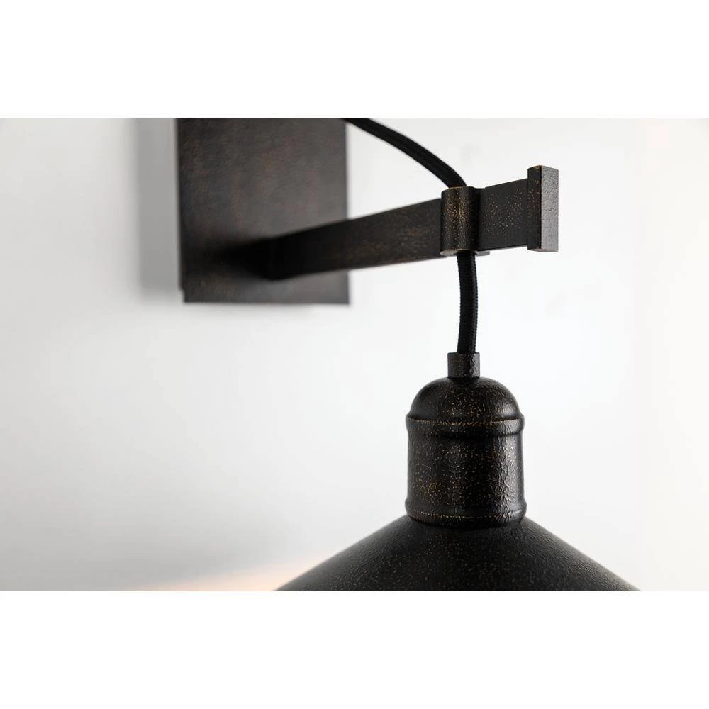The vintage style of the McCoy Wall Sconce by Troy Lighting is a distinct piece to add to your hallways. The vintage bronze hand worked iron shade suspends from the backplate with a fabric wrapped cord. The industrial style is given a vintage vibe with the simple Edison bulb.