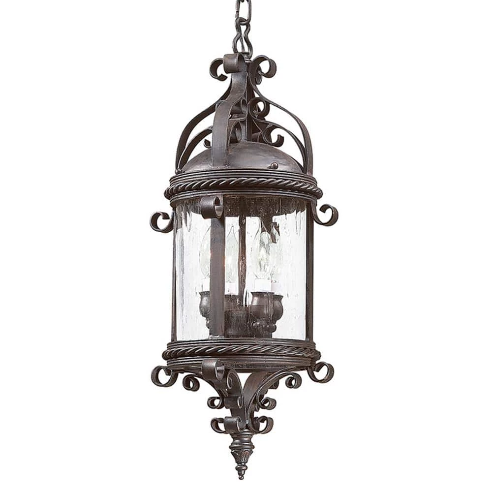 The Troy Lighting Pamplona collection is hand-crafted by expert artisans designers to add a rustic and romanticized appearance to your decor. The collection features Clear Seeded glass shades, hand-forged iron construction in an Old Bronze finish. Hang these fixtures outdoors to illuminate walkways or entrances.