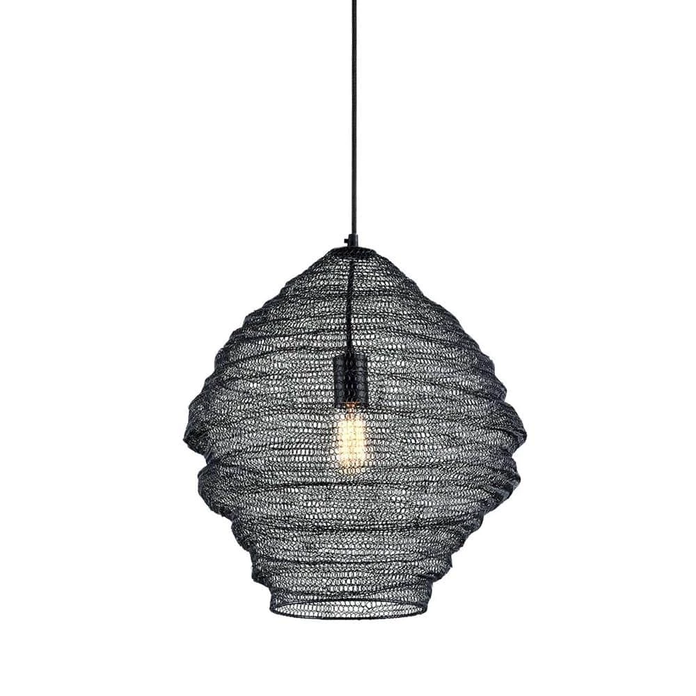 Named after a Japanese way of thinking that finds beauty in the imperfect, Wabi Sabi evinces ample opportunity for such an aesthetic appraisal with its organic shape. Its iron mesh slip ships flat; upon receiving it, you decide how to hang it and form it into a shape uniquely yours. Made from hand-worked iron with black finish.